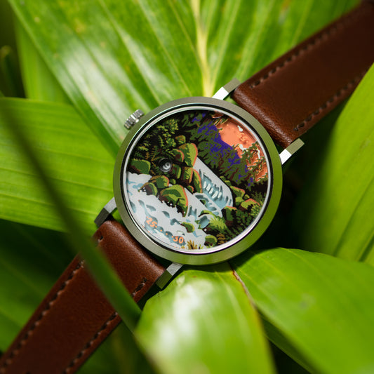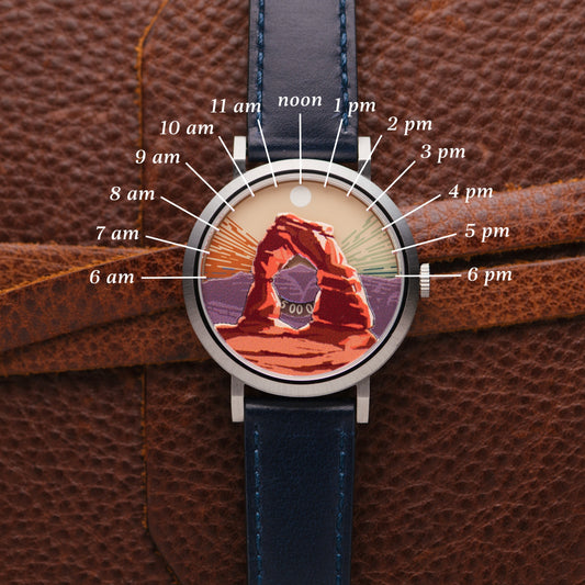 A collection of illustrative art pieces depicting scenic parks all while telling time in a unique and fun way.